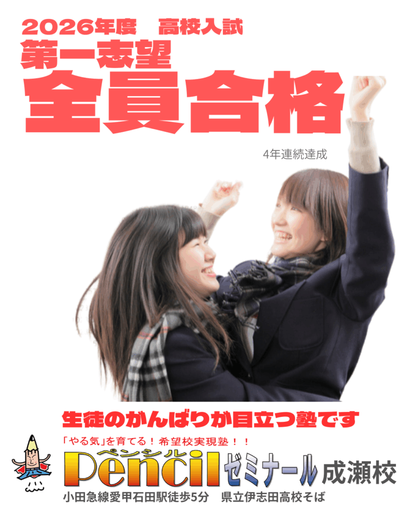 ペンシルゼミナール成瀬校では、今年も中学3年生全員が第一志望校に合格しました。